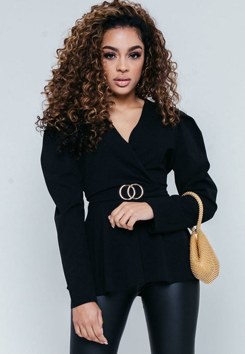 Sold outGathered Sleeve Wrap Blouse In Blue